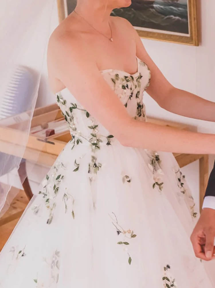 A-line Sweetheart Neck Bridal Gown,Green Embroidered Wedding Dress,WS25103115