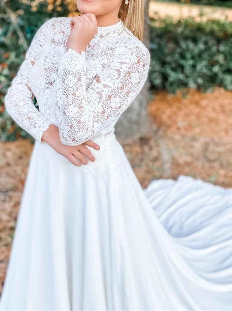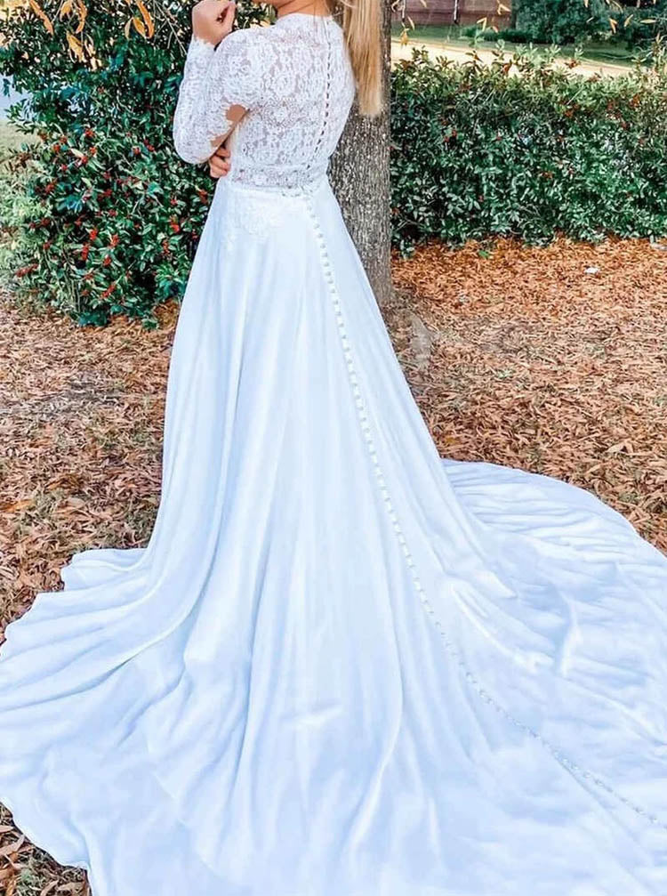 Modest Wedding Dress With Long Sleeve,Chiffon Outdoor Wedding Dress,WD2509171545