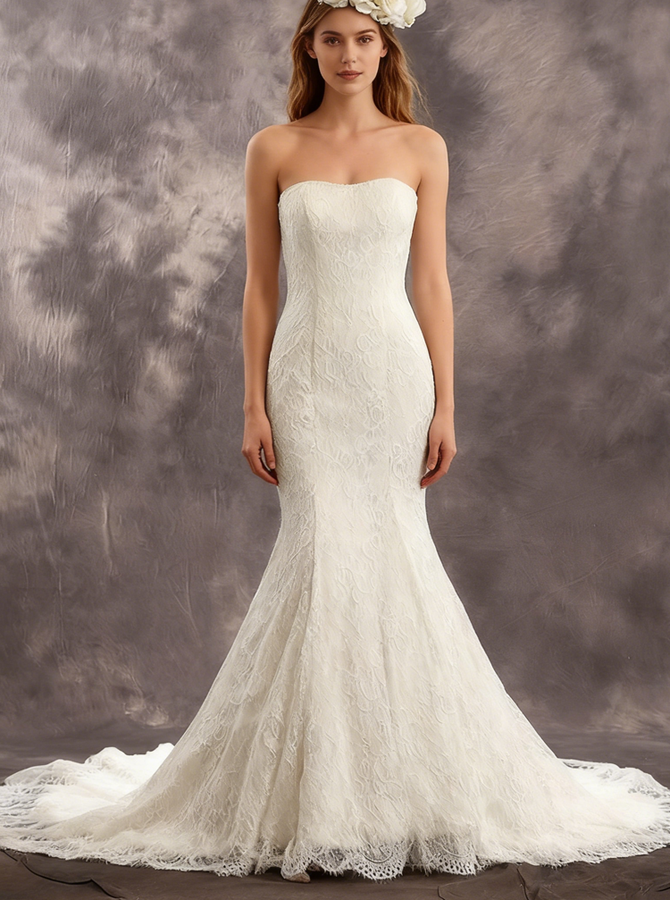 Simple Mermaid Wedding Dresses,Strapless Lace Wedding Dress,WD00531