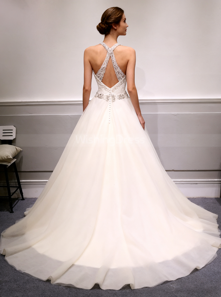 Ivory A-line Wedding Dresses,Tulle Long Wedding Dress,WD00380
