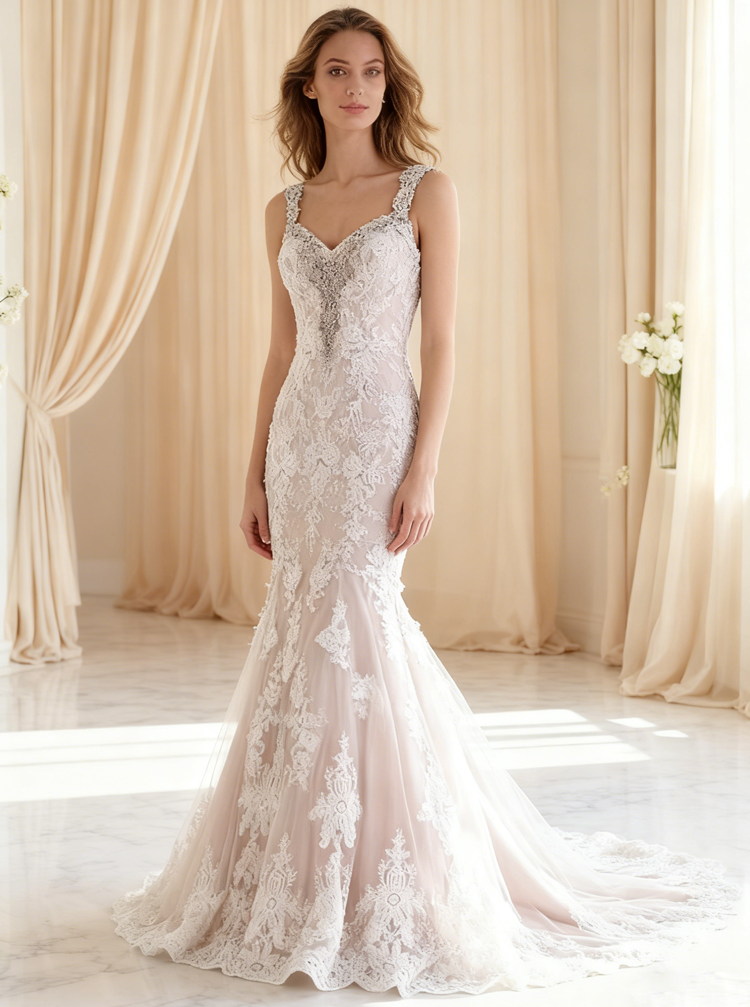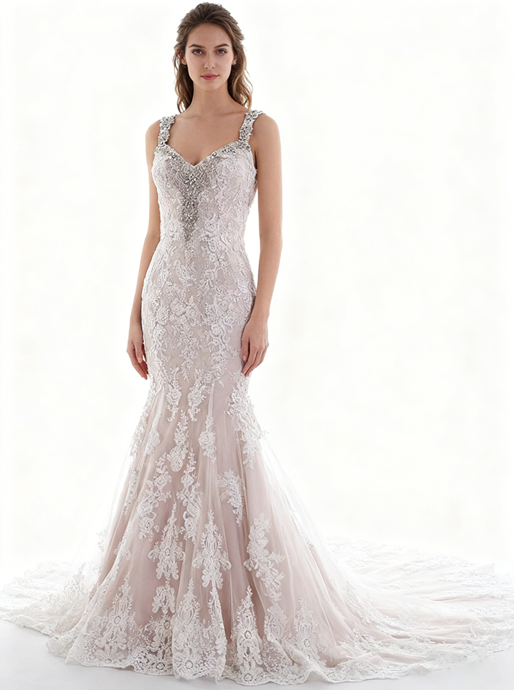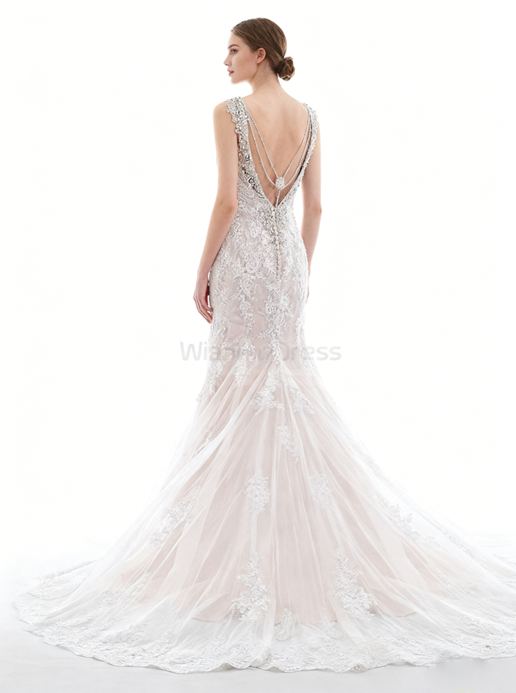 Lace Wedding Dress with Straps,Mermaid Wedding Dress,Backless Wedding Dress,WD00004