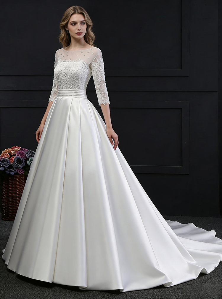 Princess Wedding Dresses,Satin Wedding Dress,Wedding Dress with Sleeves,Aline Wedding Dress,WD00144