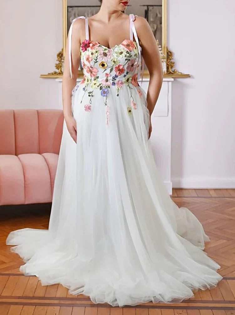Tie Strap A-line Wedding Dress,Embroidered Bodice Wedding Gown,WS2510021521