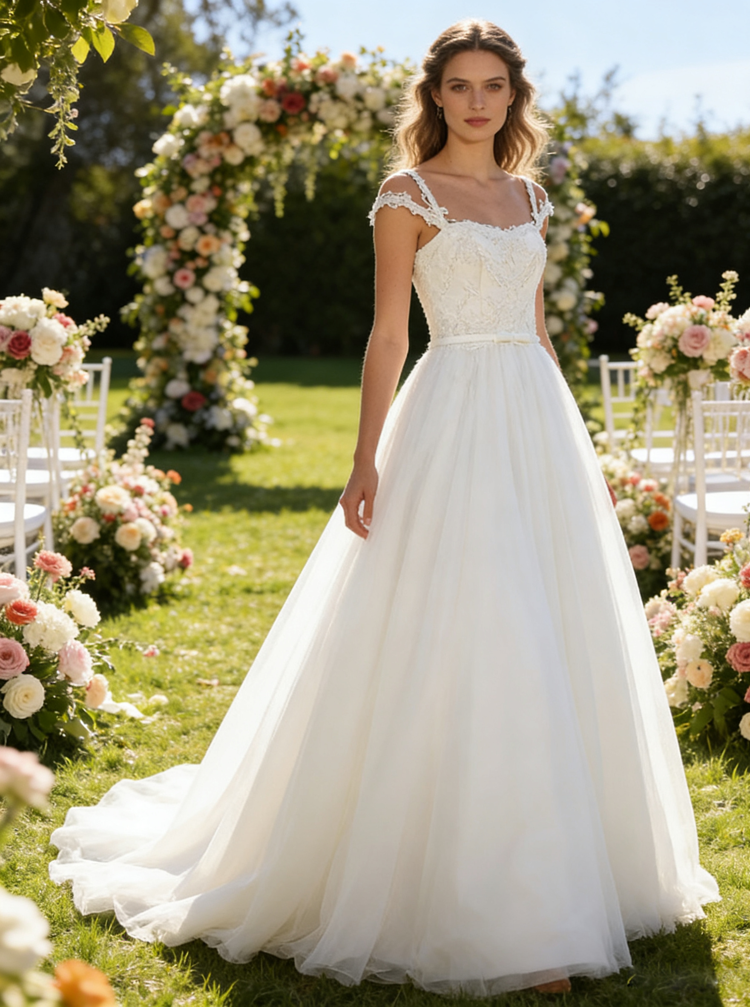 Princess Wedding Dresses,Simple Wedding Dress,Strappy Wedding Dress,A-line Wedding Dress,WD00212