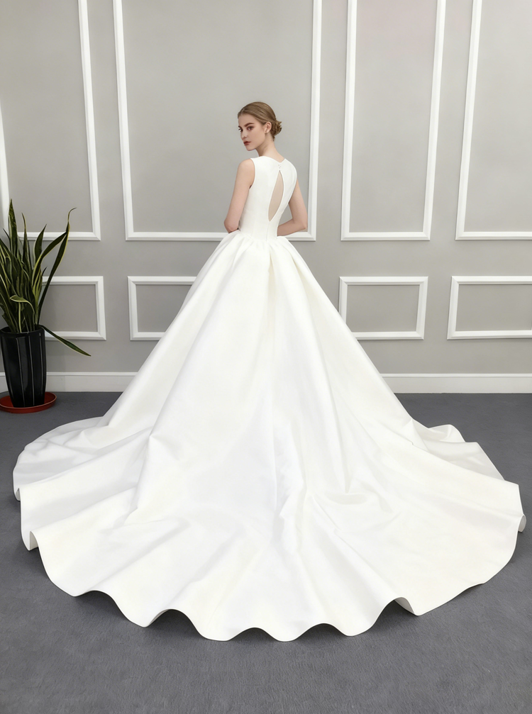 Satin Wedding Dresses,Modest Wedding Dress,White Wedding Dress,Simple Bridal Dress,WD00156
