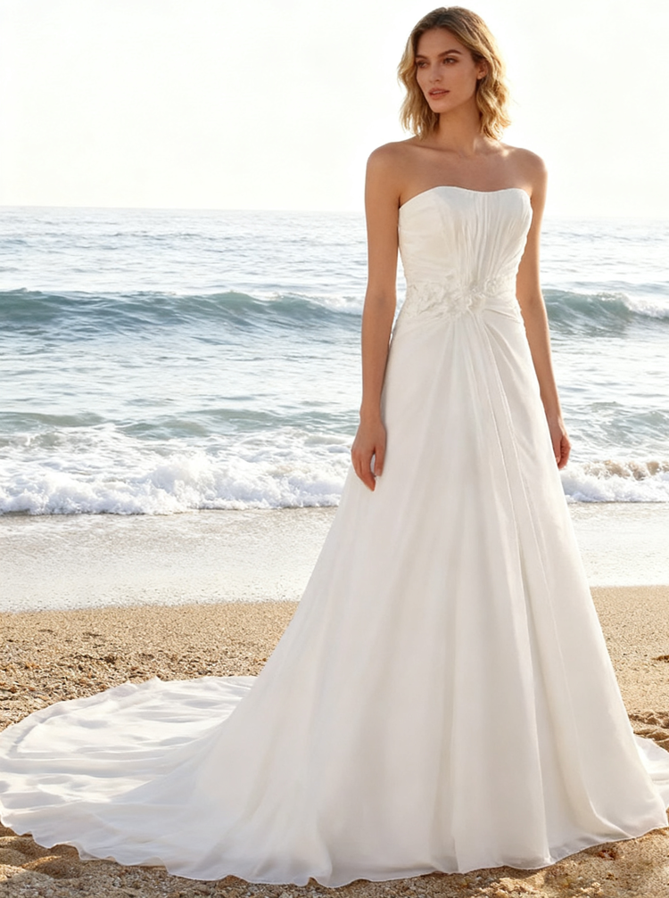 Simple Strapless Wedding Dress,Beach Chiffon Wedding Dress,WD00560