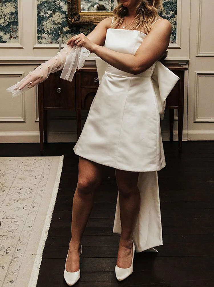 Spaghetti Straps Short Satin Wedding Dress,Wedding Reception Dress With Big Bow,WS25103101