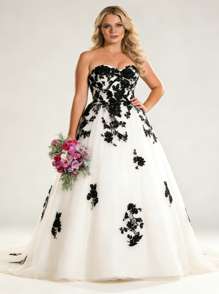 Plus Size Bridal Gown with Sweetheart Neckline,Lace Black White Wedding Dress,WD00692